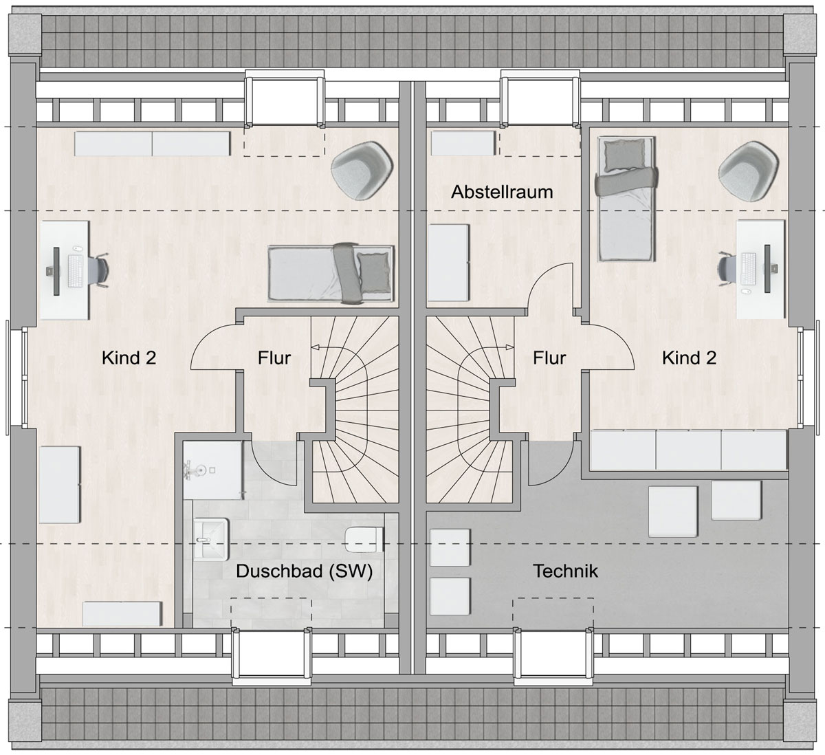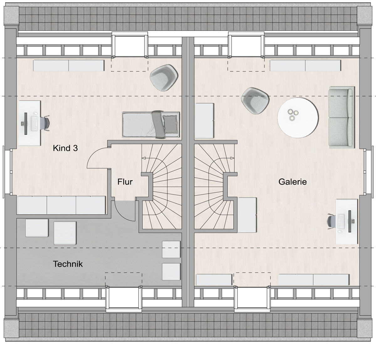 Bitte berücksichtigen Sie, dass die Varianten 2 und 3 (Dachgeschoss) nur in Verbindung mit der Variante 3 (Obergeschoss) kombinierbar sind.